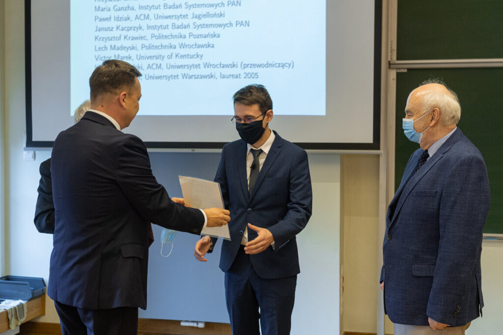 Następnie przewodniczący Rady Nagrody prof. Leszek Pacholski podsumował prace Rady Nagrody i ogłosił, że zwycięzcą tegorocznego konkursu został Krzysztof Nowicki z Uniwersytetu Wrocławskiego. Dyplomy wręczali: Leszek Pacholski – przewodniczący Rady Nagrody, Jacek Kacprzyk – przedstawiciel Polskiego Towarzystwa Informatycznego oraz Jacek Szczepański- wiceprezes zarządu Atende, sponsora tegorocznej edycji konkursu.