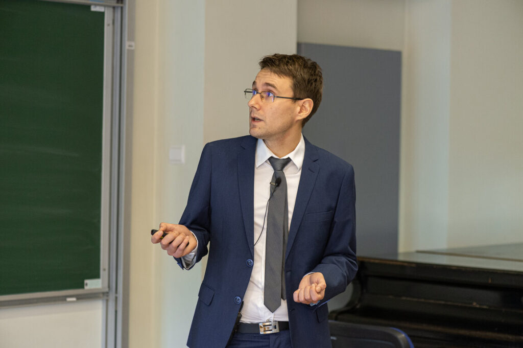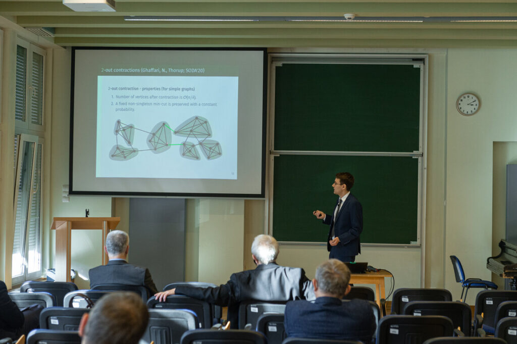 Najważniejszą częścią uroczystości było wystąpienie laureata na temat swoich zainteresowań naukowych. Krzysztof Nowicki mówił o równoległych algorytmach grafowych, w tym m.in. o problemie minimalnego drzewa spinającego w modelu Congested Clique oraz o algorytmach dla dynamicznie zmieniających się grafów.