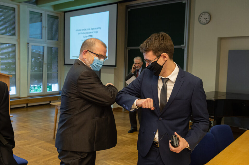 Ostatnią częścią uroczystości był poczęstunek w klubie pracowniczym Wydziału. Była to okazja, by w nieformalnej atmosferze jeszcze raz pogratulować laureatowi.